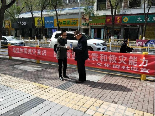 5月11日,63365配合防震减灾示范社区文化街社区在辖区人员密集场所,组织开展了以“行动起来,参与防震减灾”为主题的宣传活动。活动中,通过集中宣讲和发放宣传资料的形式,向居民群众广泛宣传如何防震减灾、应急避险及自救互救知识,增强辖区居民的防震减灾意识,以最大程度减轻地震带来的伤害。累计发放各类宣传彩页200余份。
