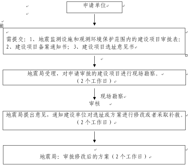 3、办理材料:地震监测设施和观测环境保护范围内的建设项目审批表(一式三份); 建设项目备案通知书;建设项目选址意见书。