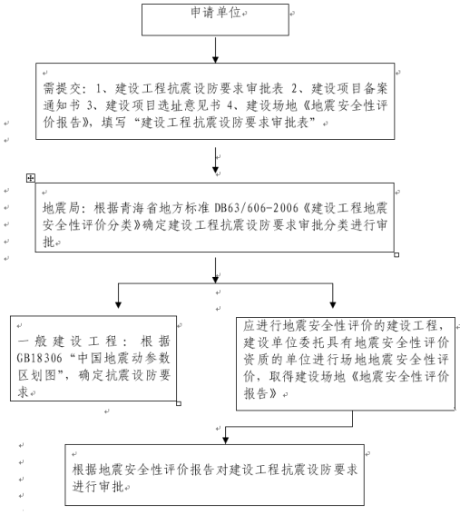 3、建设工程抗震设防要求审批表(一式三份); 建设项目备案通知书;建设项目选址意见书;建设场地《地震安全性评价报告》。